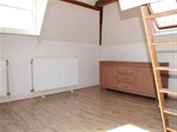 Indeling: gemeenschappelijke entree op begane grond, trap naar 3e etage, entree appartement, gang met ruime opbergkast, apart toilet met fontein, woonkamer van ca.: 25 m2 met open keuken voorzien van kookplaat, afzuigkap, oven en koelkast. Semi aparte slaapkamer van ca.: 9 m2 met toegang tot ruime badkamer met wastafel en wasmachine aansluiting. Via vlieringtrap in de woonkamer is de ruime vide / 2e slaapkamer van ca.: 15 m2 te bereiken.