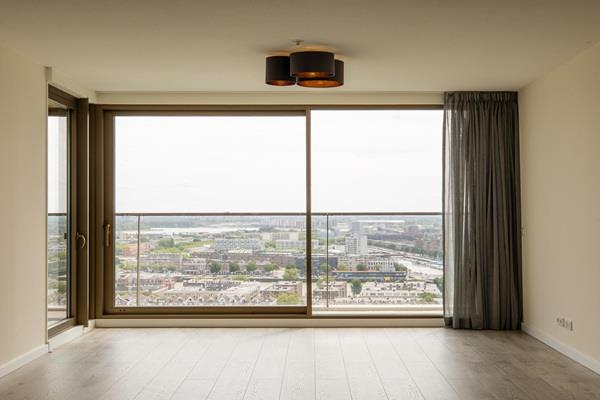 22e verdieping; zeer nette entree tot de woning, aansluitend de woningentree/gang met aansluitend de ruime hal, met toegang tot de woonkamer met open keuken, toilet en berging. Vanuit de woonkamer is er toegang tot de