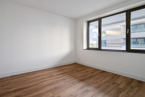 Het appartement wordt opgeleverd met PVC vloer en witte wandafwerking.