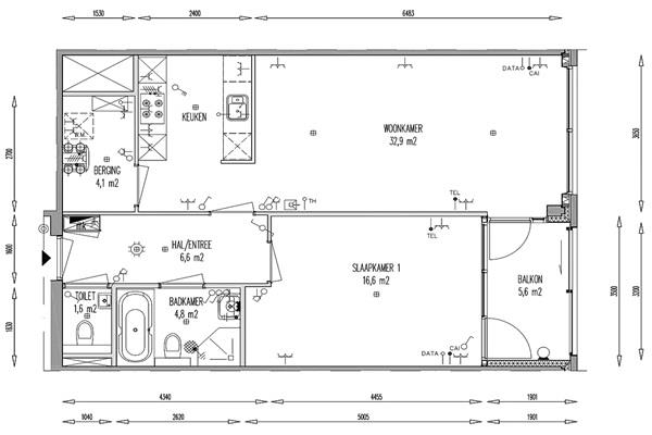 Je komt binnen in de hal, die toegang geeft tot alle vertrekken van het appartement. Vanuit hier bereik je de slaapkamer, badkamer, separate toiletruimte, berging en de woonkamer.
