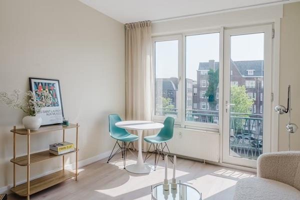 Indeling: entree van de woning, gang met inbouwkast, woonkamer met inbouwkast en frans balkon welke zeer fraai uitzicht geeft over de kostverlorenvaart. Verzorgde badkamer voorzien van een toilet, douche en wastafel. Verzorgde, dichte maar relatief eenvoudige keuken welke voorzien is van een gaskookplaat. Slaapkamer eveneens voorzien van twee inbouwkasten.