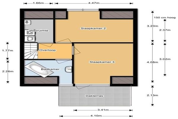Slaapkamer 4 (4,08 x 3,41m) aan de achterzijde van de woning, tevens voorzien van dakkapel en met toegang tot het dakterras (4,10 x 3,41m).
