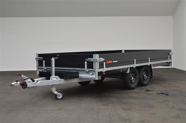 De Anssems PSX plateauwagen is speciaal ontworpen voor professioneel gebruik en valt op door zijn robuuste constructie en ruime standaarduitrusting. Het laden en lossen met een heftruck is mogelijk aan drie zijden, wat zorgt voor flexibele en efficiënte werkomstandigheden.