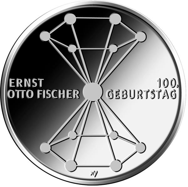 Ernst Otto Fischer (1918-2007) was een Duitse Chemicus en Hoogleraar Anorganische Chemie. Ernst Otto Fischer kreeg in het jaar 1973 de Nobelprijs voor de Chemie (Samen met de Engelsman Geoffrey Wilkinson). Ernst Otto Fischer kreeg de Nobelprijs omdat hij baanbrekend onderzoek had verricht naar Metaal-Koolstofverbindingen. Deze z.g. Dibenzeenchromium verbindingen vertonen een ongebruikelijke stabiliteit en worden bij waterstofreacties gebruikt. In het jaar 2018 is het 100 jaar geleden dat Ernst Otto Fischer is geboren en ter herinnering hieraan heeft Duitsland een bijzondere zilveren munt met een nominale waarde van 20 Euro uitgegeven. Op de voorkant van de munt ziet men een artistiek getransformeerd model van de onderzoeksresultaten van Fischer, het z.g. Dibenzeen chromium met een dubbele kegelstructuur. Aan de linkerkant van de munt ziet men zijn naam Ernst Otto Fischer en aan de rechterkant van de munt de tekst 100. Geburtstag (100e verjaardag). Op de achterkant van de munt ziet men centraal in het midden de Bondsadelaar die in harmonie met de voorkant afgebeeld is conform het model op de voorkant van de munt. Links en rechts van de munt ziet men elk 6 sterren van Europa. Aan de bovenkant van de munt ziet men de waarde aanduiding van 20 Euro met daaronder het woord Bundesrepublik (Bondsrepubliek). Aan de onderkant van de munt ziet men het woord Deutschland (Duitsland) met daaronder het jaartal 2018. Verder ziet men de letter D, deze geeft de slagplaats aan van de munt zijnde München, de stad waar Ernst Otto Fischer jarenlang hoogleraar was aan de Universiteit aldaar. Het randschrift van de munt luidt NATURWISSENSCHAFTEN SIND WEDER GUT NOCH BOESE (Natuurwetenschappen zijn noch goed noch kwaad) Bij Eurocoinhouse kunt u allerlei verschillende soorten euromunten kopen, maar ook accessoires, sets en bijzondere uitgaves van herdenkingsmunten.