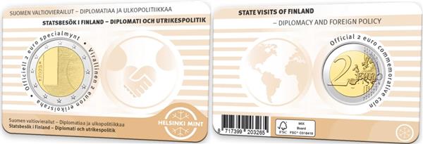 Finland 2 Euro 2025 'Diplomatie en Buitenlands Beleid' Coincard Fins. Finland heeft een bijzondere 2 Euromunt uitgegeven met als thema: Diplomatie en Buitenlands Beleid. Finland staat bekend om hun internationale samenwerking en proberen altijd hun politieke, culturele en economische relaties hoog te houden. Uiteraard zijn de Finnen vertegenwoordigd bij de Ambassade in Brussel waarbij de Finse diplomaten hun voornaamste taak is: Het zo goed mogelijk laten horen van de belangen en het beleid van Finland in de EU en dit altijd te verdedigen. Op de voorkant van de munt ziet men een deur, die de onderhandelingen moesten voorstellen die plaatsvinden achter gesloten deur. Verder wordt het jaartal van uitgifte, 2025 weergegeven. De munt is verpakt in een Crèmekleurige Coincard waarbij op de voorkant de tekst geschreven is in het Fins en Zweeds en op de achterkant in het Engels. Bij Eurocoinhouse kunt u allerlei verschillende soorten euromunten kopen, maar ook accessoires, sets en bijzondere uitgaves van herdenkingsmunten.