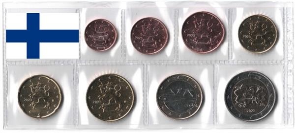 Finland UNC 2023. De munten van Finland 2023 zullen zeer zeker niet allemaal in circulatie komen. Deze complete set Finse munten van het jaar 2023 bevat 8 munten, de 1 cent 2023 tot en met de normale 2 Euro 2023. Onmiddellijk nadat in het jaar 2002 de Euro in Finland werd ingevoerd werden de 1 cent munten en 2 cent munten al uit de circulatie gehaald en deze munten zijn altijd een gewild verzamelobject gebleven. Op de 1 cent munten tot en met de 50 cent munten ziet men de leeuw van het wapen van Finland. Aan de linkerkant van deze munten ziet men het jaartal 2023. Op de 1 Euromunt ziet men een tweetal zwanen die over het typische Finse landschap vliegen. Het jaartal 2023 ziet men rechts onder in het landschap verwerkt. Op de 2 Euromunt ziet men een afbeelding van een Kruipbraam (Robus Chamaemorus), een typische plant die in Finland groeit en temperaturen tot wel minus 45 graden kan doorstaan! Het jaartal 2023 ziet men aan de onderkant van deze 2 Euromunt. Bij Eurocoinhouse kunt u allerlei verschillende soorten euromunten kopen, maar ook accessoires, sets en bijzondere uitgaves van herdenkingsmunten.