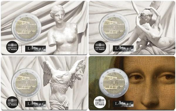 Frankrijk 2 Euro 2025 'Het Louvre' Coincard Serie van 4. Frankrijk heeft een bijzondere 2 Euromunt uitgegeven met als thema: Het Louvre. Het Louvre is een van 's wereld grootste musea! Het Louvre was vroeger een paleis waarbij eeuwenlang de koningen van Frankrijk resideerden. Het Louvre bestaat uit drie vleugels, namelijk: de Sully-vleugel, de Denon-vleugel en de Richelieu-vleugel. Het oorspronkelijke kasteel werd in 1190 gebouwd door Koning Filips II. Het Louvre bevat naast de Westerse Schilderkunst ook vele Griekse, Romeinse, Egyptische en Oosterse collecties die prachtig zijn ondergebracht in het Louvre. Het bekendste werk wat in het Louvre hangt is toch wel de Mona Lisa, geschilderd door Leonardo da Vinci. Op de voorkant van de munt ziet het Louvre met hieronder de Franse tekst: MUSEE DU LOUVRE (Het Louvre). Verder wordt het jaartal van uitgifte, 2025, weergegeven. Deze Franse 2 Euro's 2025 'Het Louvre' zijn verpakt in 4 verschillende Coincards. Op de Coincards staan de marmeren beelden: Amor en Psyche, Venus van Milo, Nikè van Samothrake en tot slot een fragment van het wereldberoemde schilderij: de Mona Lisa. Deze Serie bevat alle 4 Coincards! Bij Eurocoinhouse kunt u allerlei verschillende soorten euromunten kopen, maar ook accessoires, sets en bijzondere uitgaves van herdenkingsmunten.