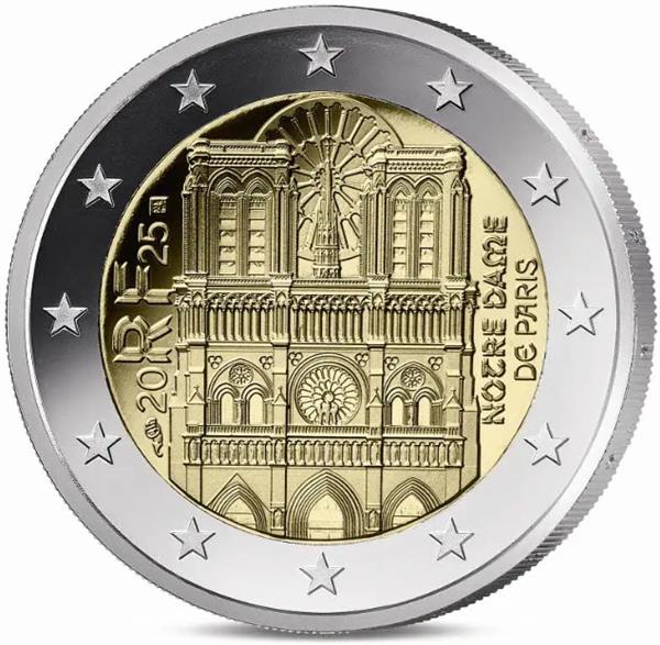 Frankrijk 2 Euro 2025 'Notre Dame'. Frankrijk heeft een bijzondere 2 Euromunt uitgegeven met als thema: Notre Dame. De Notre Dame is een kathedraal dat ligt in het centrum van Parijs en gebouwd is een gotische bouwstijl. De eerste steen van de Notre Dame werd geplaatst door Paus Alexander III in het jaar 1163. Dit betekend dat de Notre Dame al 862 jaar oud is! De Notre Dame is een immens bouwwerk dat ruim 130 meter lang is waarbij de twee voorste torens maar liefst 69 meter hoog zijn! De Notre Dame trekt maar liefst 12 miljoen bezoekers per jaar. Op de voorkant van de munt ziet men een afbeelding van de Notre Dame en wordt het jaartal van uitgifte, 2025 weergegeven. Verder wordt de naam: Notre Dame en Paris (Parijs) weergegeven op de munt. De munt is verpakt in een bedrukte munthouder. Bij Eurocoinhouse kunt u allerlei verschillende soorten euromunten kopen, maar ook accessoires, sets en bijzondere uitgaves van herdenkingsmunten.