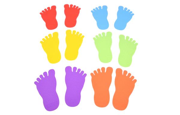 set van 12 voetafdrukken in 6 verschillende kleuren (afm. 10 x 20 cm)