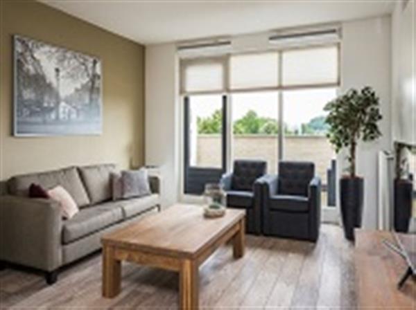 Royale en lichte woonkamer met toegang tot het balkon; open moderne keuken voorzien van alle benodigde inbouwapparatuur zoals koelkast, vaatwasser, combi oven/magnetron, 4 pits gasfornuis en afzuigkap.