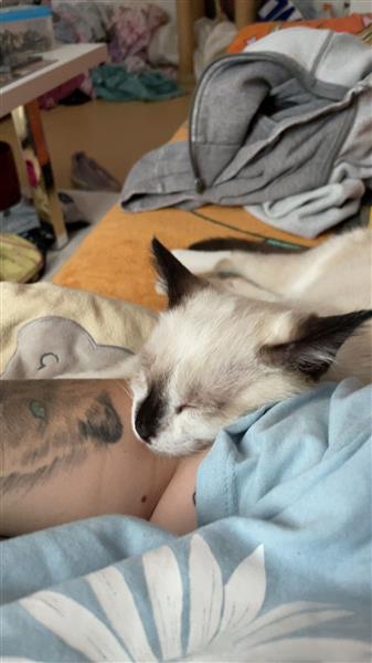 Aangeboden kitten van 15 weken. Beau is van mijn dochter maar kan niet bij haar wonen, Beau woont nu bij mij maar het gaat niet goed met mijn kat, ze kan niet meer eten dan springt Beau er meteen op en breekt de chipvoerbak open. Met de andere kat van mijn dochter is het regelmatig grommen en blazen. Met de andere 2 katten van mij gaat het wel goed. Beau is een aanhankelijk kereltje dat graag bij je komt liggen. Spelen doet hij ook graag. Hij is geënt, gechipt, ontwormd en behandeld tegen vlooien en hij heeft een entingsboekje. Wie wil hem een fijn huisje geven? U kunt contact opnemen met 0618530357
