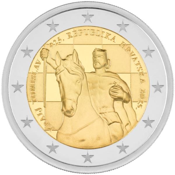 Kroatië 2 Euro 2025 'Koning Tomislav'. Kroatië heeft een bijzondere 2 Euromunt uitgegeven met als thema: Koning Tomislav I. Koning Tomislav I was van origine een Telg, die kwam uit het Trpimirovic dynastie. In het jaar 924 werd hij door Paus Johannes X tot koning van Kroatië gekroond in Zupanjac. Deze plaats werd later ter ere van Tomislav omgedoopt tot Tomislavgrad en zo heet het hedendaags nog steeds! Op zeer jonge leeftijd wist hij Slavonië, Bosnië, Dalmatië en Kroatië te verenigen tot het Kroatische Koninkrijk. Hij wordt gezien als een sterke, inspirerende leider die zijn Koninkrijk uitbreide en verdedigde met een uiterst sterk leger. Vanwege het feit dat Kroatië ruim 1000 jaar geleden gesticht is, is er een bijzondere 2 Euromunt uitgegeven ter ere van Koning Tomislav. Op de voorkant ziet men een afbeelding van Koning Tomislav zittend op zijn paard. Dit imposante standbeeld vindt men in het centrum van Zagreb. Verder wordt de landsnaam: Republika Hrvatska (Kroatië) weergegeven en het jaartal van uitgifte : 2025. De munt is verpakt in een bedrukte munthouder. Bij Eurocoinhouse kunt u allerlei verschillende soorten euromunten kopen, maar ook accessoires, sets en bijzondere uitgaves van herdenkingsmunten.