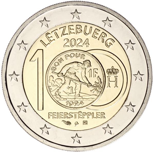 Luxemburg 2 Euro 2024 '100 Jr. 1 Frank' Gieterij Arbeider UNC