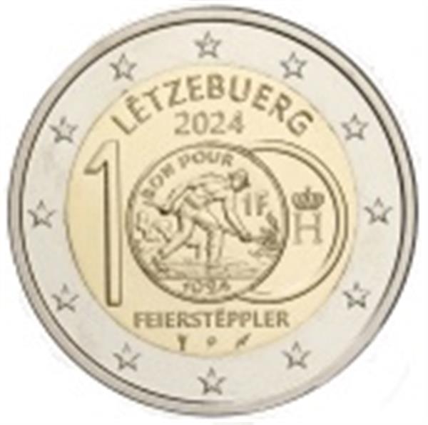 Luxemburg 2 Euro 2024 '100 Jaar 1 Frank - Gieterij arbeider' + Muntteken. Luxemburg heeft een bijzondere 2 Euromunt uitgegeven met als thema: '100 Jaar 1 Frank - Gieterij arbeider' (Vuurstopper). In 1924 werd voor het eerst een 1 Frank stuk uitgegeven waarop een Gieterij arbeider (Vuurstopper) stond afgebeeld. De Luxemburgse Franc (LUF) was vanaf 1854 de munteenheid van Luxemburg. De Luxemburgse Frank was 100 Cent waard en was gekoppeld aan de Belgische Frank. Omdat deze 1 Frank 100 jaar geleden voor het eerst werd uitgegeven heeft de Luxemburgse Bank besloten om hier een bijzondere 2 Euromunt over uit te geven. Op de voorkant van de munt ziet men deze 1 Frank 1924 - Gieterij arbeider verwerkt in het getal 100. Verder ziet men de landsnaam: LËTZEBUERG (Luxemburg) en het jaartal van uitgifte, 2024. Tot slot zien men staan: FEIERSTËPPLER (Vuurstopper). Deze bijzondere 2 Euro 2024 '100 Jaar 1 Frank - Gieterij Arbeider' kent de Munttekens Mercuriusstaf + Raaf. Dit betekent dat de munten geslagen zijn in Nederland. De oplage is slechts 7.500 exemplaren! De munt is verpakt in een bedrukte munthouder. Bij Eurocoinhouse kunt u allerlei verschillende soorten euromunten kopen, maar ook accessoires, sets en bijzondere uitgaves van herdenkingsmunten.