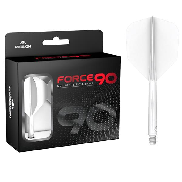 Mission Force 90.Nieuw gegoten flight en Shaft Systeem. Voel de kracht van de Mission Force 90 – een volledig geïntegreerd shaft en flight systeem! De Force 90 is gemaakt van hoogwaardige en duurzame materialen en behoudt tijdens het spel een perfecte hoek van 90 graden tussen de vleugels van de flight, waardoor spelers elke keer een consistent vliegtraject krijgen. De Force 90 bevindt zich op het hoogste niveau op het gebied van duurzaamheid en sterkte met deze flights gemaakt van hoogwaardig composietmateriaal, waardoor elke speler de gemoedsrust krijgt van consistente prestaties bij elke worp. De flights op de Force 90 zijn voorzien van gladde randen om doorbuigingen tijdens het spelen te verminderen en zorgen ervoor dat ze door de lucht snijden om een zuiverder en nauwkeuriger traject te bevorderen. Verkrijgbaar in drie verschillende vormen (nr. 2, nr. 6 en slim) en elk in drie lengtes (kort, tweenie en medium) om tegemoet te komen aan de voorkeuren van alle spelers. De Force 90 wordt gelanceerd in drie kleuren (zwart, wit en transparant) en er komen binnenkort meer kleuren aan!