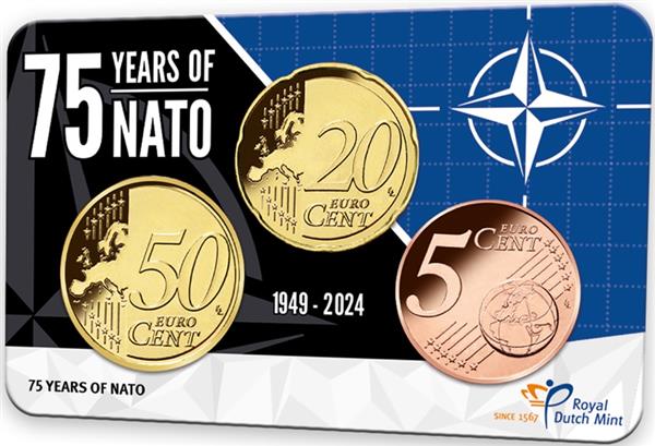 Nederland Coincard NATO 2024. Nederland heeft een Coincard uitgegeven ter ere van het 75-jarig bestaan van de NATO. De NATO staat voor: Noord-Atlantische Verdragsorganisatie. Het is een internationale organisatie die als belangrijkste basisprincipe heeft: het garanderen van vrijheid en veiligheid van haar lidstaten. Een aanval tegen of meer lidstaten betekent een aanval tegen alle lidstaten. Daarnaast is ook Amerika lid van deze NATO. In de Coincard is een 50 Cent, 20 Cent en een 5 Cent van 2024 verpakt, wat samen 75 cent is, een verwijzing naar het 75-jarige bestaan van de Noord-Atlantische Verdragsorganisatie. Op de voorkant van de Coincard ziet men een afbeelding van het logo van de NATO. De oplage van deze Coincard is 7.500 exemplaren. Bij Eurocoinhouse kunt u allerlei verschillende soorten euromunten kopen, maar ook accessoires, sets en bijzondere uitgaves van herdenkingsmunten.