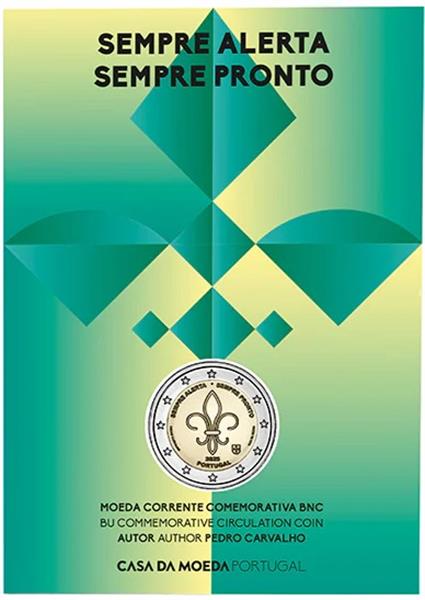 Portugal 2 Euro 2025 'Scouting' Coincard BU. Portugal heeft een bijzondere 2 Euromunt uitgegeven met als thema: Scouting. De Portugese Scouting (Corpo Nacional de Escutas - Escutismo Catolico Portugues) is de grootste Portugese Scoutingvereniging die werd opgericht in het jaar 1923. De vereniging telt meer dan 80.000 leden! De eerste nationale bijeenkomst werd gehouden in Braga in 1925, exact 100 jaar geleden, vandaar dat Portugal besloten heeft om hier een bijzondere 2 Euromunt over uit te geven. Op de voorkant van de munt ziet men een afbeelding van het logo van de Scoutingvereniging en ziet men de kernwaarden staan: SEMPRE ALERTA - SEMPRE PRONTO: Altijd alert, Altijd klaar. Deze waarden weerspiegelen de waarden van burgerschap en verantwoordelijkheid die deze scouts uitdragen. Deze Portugese 2 Euro 2025 'Scouting' is verpakt in een schitterende Coincard. Op de achterkant van de Coincard ziet men de technische gegevens van deze munt. De kwaliteit van de munt is BU (Brilliant Uncirculated). Bij Eurocoinhouse kunt u allerlei verschillende soorten euromunten kopen, maar ook accessoires, sets en bijzondere uitgaves van herdenkingsmunten.