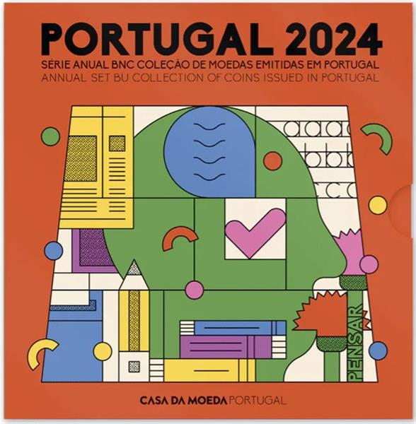 Portugal BU 2024. Dit is de BU set van Portugal 2024. De Portugese BU set 2024 bevat alle 8 nominaties. Dit wil zeggen de Portugese 1 cent 2024 tot en met de normale 2 Euro van Portugal 2024. De afbeeldingen op de Portugese munten zijn gebaseerd op oeroude Koninklijke zegels van Dom Afonso Henriques. Op de 1 cent + 2 cent + 5 cent ziet men het Koninklijk zegel uit het jaar 1134. Op de 10 cent + 20 cent + 50 cent ziet men het Koninklijk zegel uit het jaar 1143 en op de 1 Euro en de 2 Euro het Koninklijk zegel uit het jaar 1144. In een cirkel ziet men de vijf wapenborden en de zeven kastelen uit het Wapen van Portugal. Tussen deze wapenborden en kastelen ziet men de landsnaam Portugal en het jaartal 2024. In de buitenste ring van de munten ziet men de 12 sterren van Europa. Diverse munten van Portugal 2024 zullen niet in circulatie komen! Bij Eurocoinhouse kunt u allerlei verschillende soorten euromunten kopen, maar ook accessoires, sets en bijzondere uitgaves van herdenkingsmunten.
