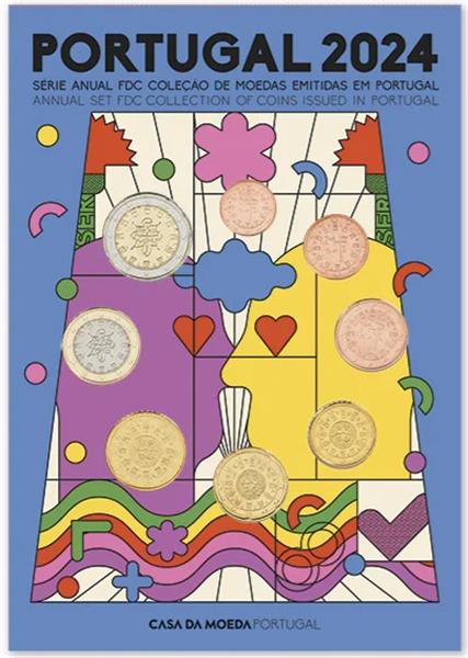 Portugal FDC 2024. Dit is de FDC set van Portugal 2024. De Portugese FDC set 2024 bevat alle 8 nominaties. Dit wil zeggen de Portugese 1 cent 2024 tot en met de normale 2 Euro van Portugal 2024. De afbeeldingen op de Portugese munten zijn gebaseerd op oeroude Koninklijke zegels van Dom Afonso Henriques. Op de 1 cent + 2 cent + 5 cent ziet men het Koninklijk zegel uit het jaar 1134. Op de 10 cent + 20 cent + 50 cent ziet men het Koninklijk zegel uit het jaar 1143 en op de 1 Euro en de 2 Euro het Koninklijk zegel uit het jaar 1144. In een cirkel ziet men de vijf wapenborden en de zeven kastelen uit het Wapen van Portugal. Tussen deze wapenborden en kastelen ziet men de landsnaam Portugal en het jaartal 2024. In de buitenste ring van de munten ziet men de 12 sterren van Europa. Diverse munten van Portugal 2024 zullen niet in circulatie komen! Bij Eurocoinhouse kunt u allerlei verschillende soorten euromunten kopen, maar ook accessoires, sets en bijzondere uitgaves van herdenkingsmunten.