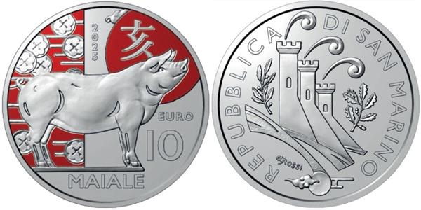 San Marino 10 Euro 2025 'De Chinese Maankalender - Varken'. De Chinese Maankalender bestaat uit maar liefst 12 verschillende dieren! Het Chinese Nieuwjaar is het belangrijkste feest van China waarbij miljarden mensen wereldwijd een eerbetoon wijden aan hun familie. Tijdens deze 15 dagen durende Nieuwjaarsfeest worden zowel de levende als de doden geëerd en herdacht. Tal van tradities worden al eeuwenlang in stand gehouden en jaarlijks gevierd. San Marino geeft in de komende jaren al deze dieren van de Chinese Maankalender uit, een prachtige serie. Deze munt staat in het teken van de Varken. Een Varken staat bekend als tolerant, begripvol, eerlijk en geduldig.. Daarnaast zijn ze vaak gastvrij en zijn ze altijd gezellig. Op de voorkant van deze munt ziet men een Varken voor een rode maan. Daarnaast wordt de waardeaanduiding van 10 Euro weergegeven en het jaartal van uitgifte, 2025. De achterkant van de munten uit deze serie is gelijk. Men ziet de drie torens van San Marino, de belangrijkste symbolen van San Marino! Dit zijn: La Guaita, La Cesta en Il Montale. Verder wordt de landsnaam: REPUBBLICA DI SAN MARINO (San Marino) weergegeven. De munten zijn verpakt in een bedrukte munthouder. Bij Eurocoinhouse kunt u allerlei verschillende soorten euromunten kopen, maar ook accessoires, sets en bijzondere uitgaves van herdenkingsmunten.