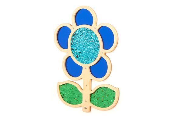 Sensorische muurbord in de vorm van een bloem. Het middelste van de bloem en de blaadjes bestaan uit paillettenstof in een houten frame. De borden stimuleren de nieuwsgierigheid en ondersteunen de motoriek. Door de bloem te aaien, verandert ze van kleur. Een mooie toevoeging aan muren, gangen, sensorische snoezelhoekjes en meer. Het bord heeft een rustgevend, kalmerend effect op de kinderen door het voelen aan de fascinerende texturen en het glinsteren van de pailletten. Verkrijgbaar in 4 kleuren.
