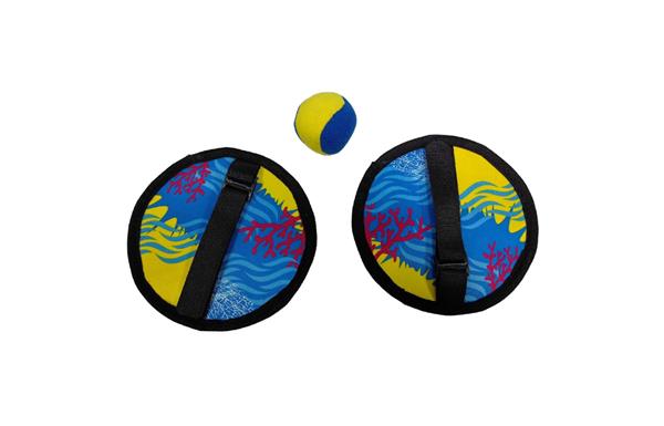 Ready, steady, catch! Een dagje strand wordt nog leuker met deze soft Catchball set, in blauw met gele kleurstelling. Formaat: 18 cm. Gewicht: 185 gram. Materiaal: nylon. Geschikt voor kinderen vanaf 5.jaar.