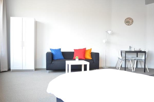 De studio heeft zijn eigen voorzieningen zoals keuken, badkamer met douche, toilet en wastafel.