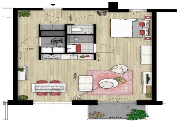 Jij woont in één grote, stoere, open ruimte met een industriële vibe.